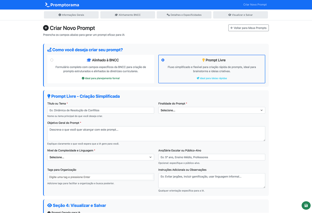Dê o primeiro passo para usar IA com intenção. Com o Promptorama, até criar prompts vira um gesto pedagógico.